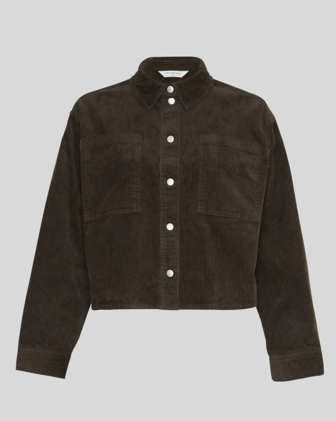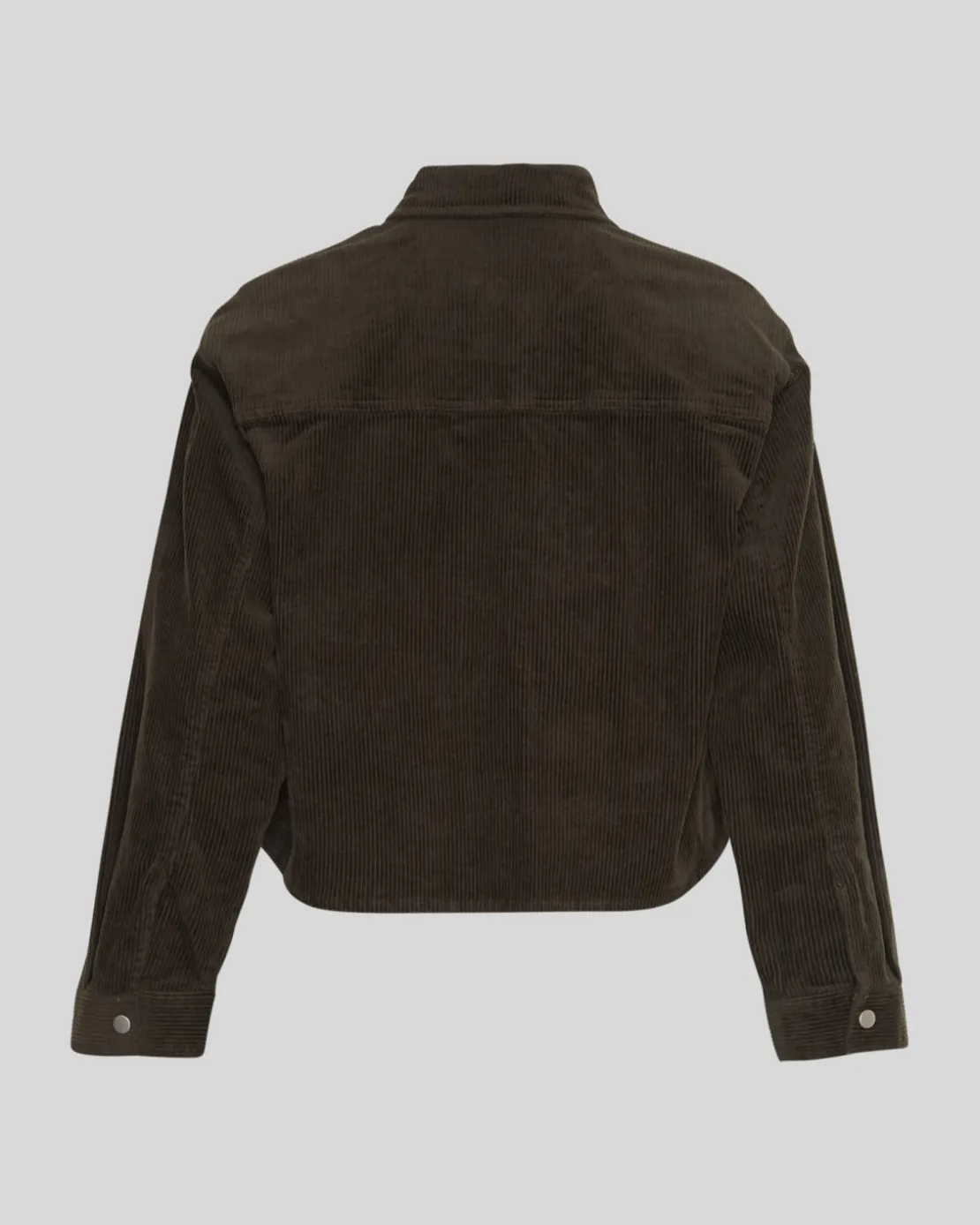A minimalistic corduroy overshirt that blends fashion with comfort. It is designed with a corduroy fabric, offering a cozy and soft texture, perfect for the colder seasons as a layering piece. This silhouette features a double front pocket, adding a touch of utility while maintaining a sleek and chic look. The button closure adds a functional detail, allowing you to wear it open or closed, depending on your style.
