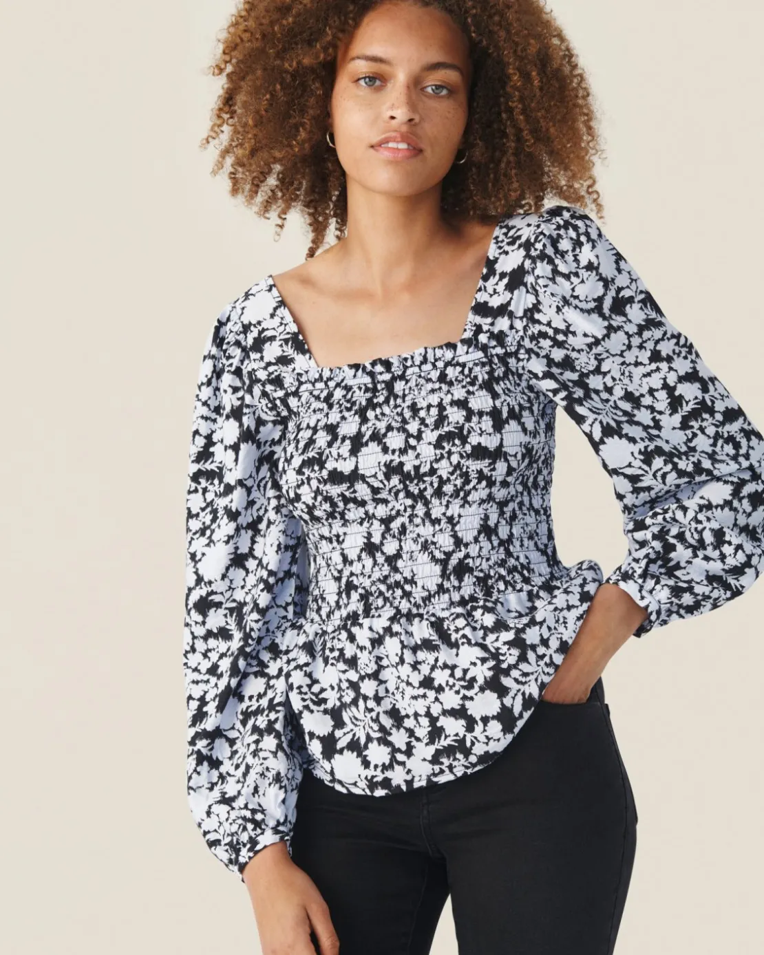 FittingThis top has a regular fit. Composition82% Ecovero™ Viscose & 18% Polyamid. Smock topA favorite: The smock, com…