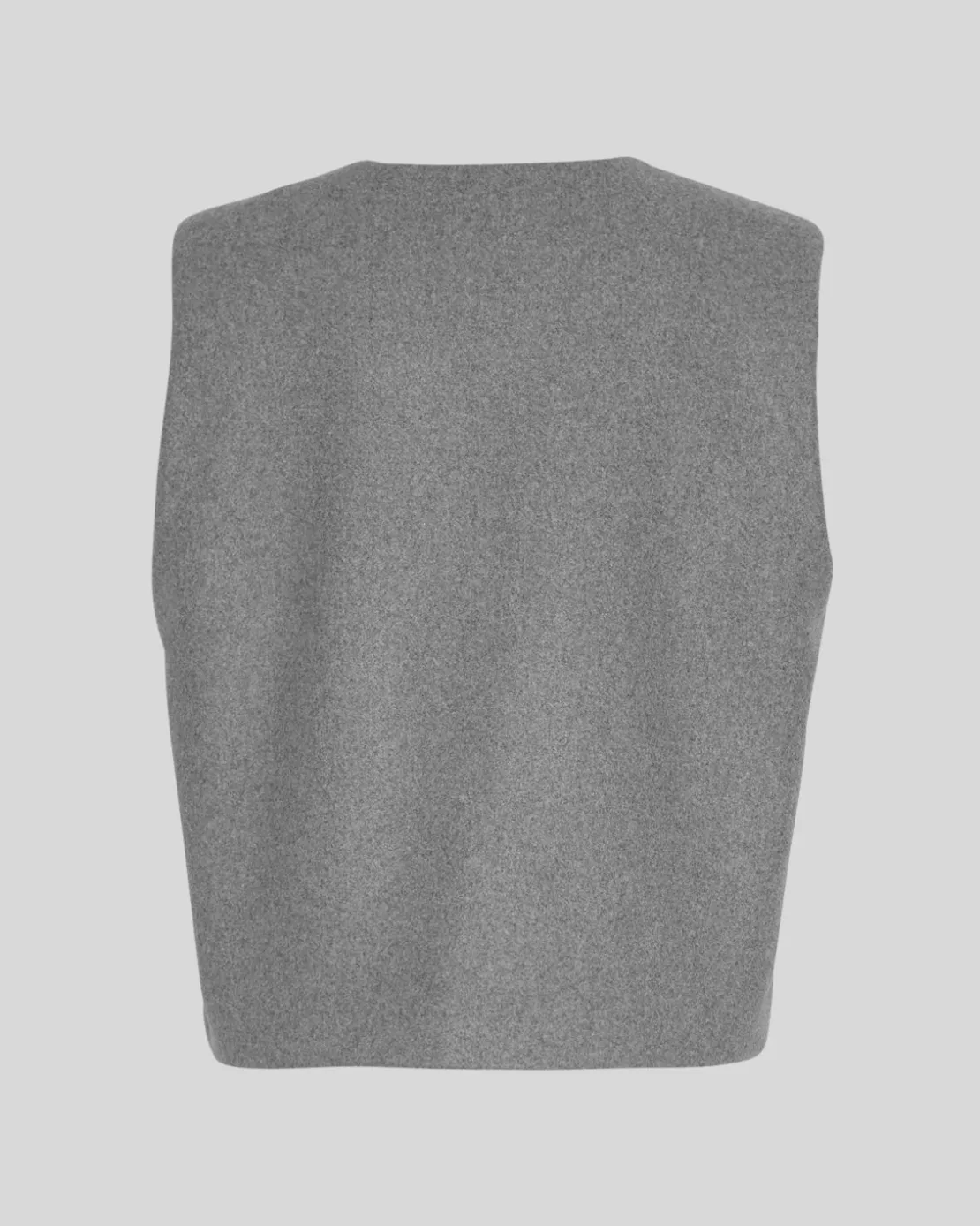 The Rikkelisa Vest is a stylish layering piece designed to add both warmth and texture to your outfits. Crafted from a soft and cozy material, this sleeveless vest features a high neckline and a relaxed fit that makes it perfect for layering over shirts or lightweight sweaters. Pair it with jthe matchende skirt or trousers for an effortlessly chic and modern look that works for both casual and dressed-up occasions.