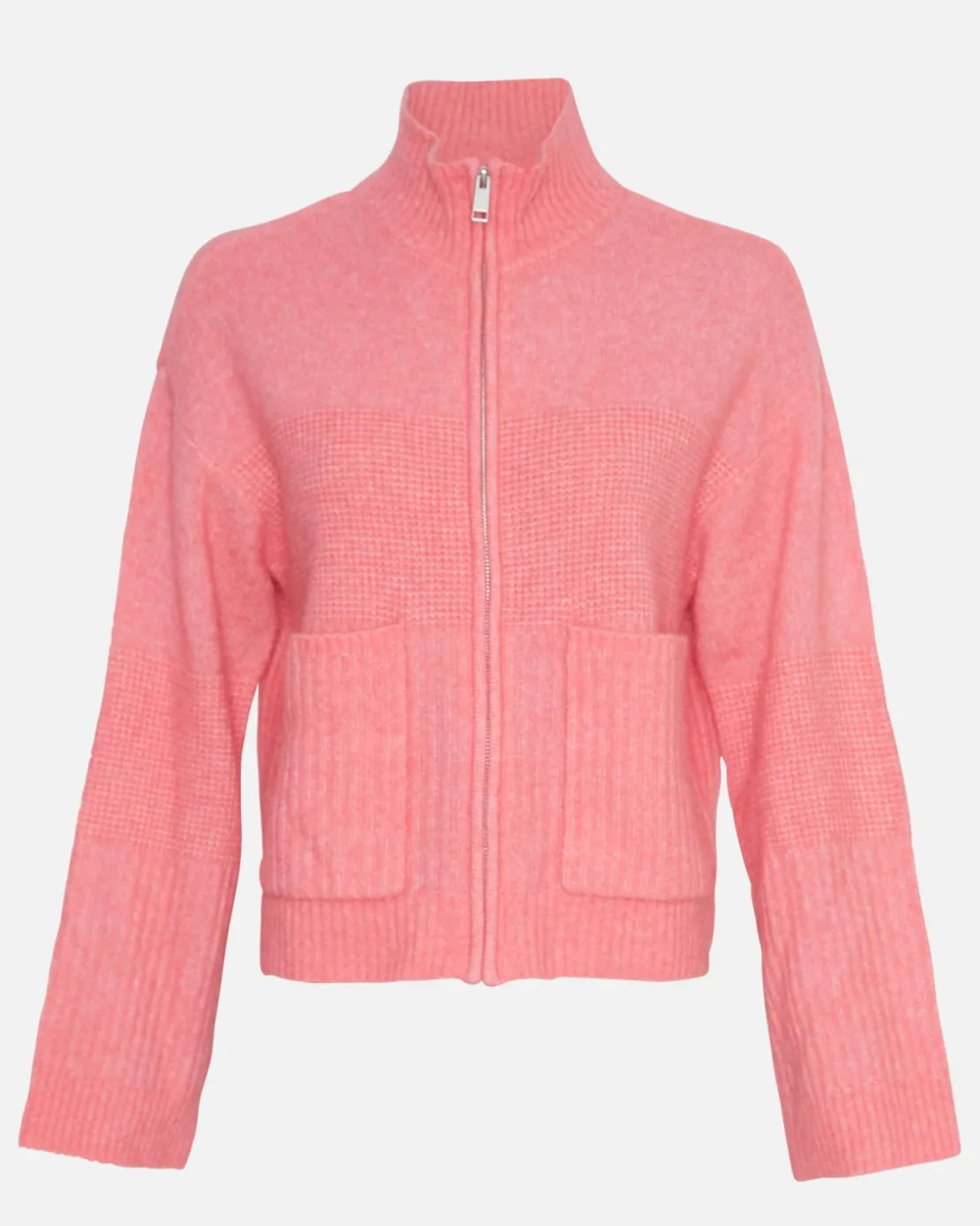Lediona seamlessly combines fashion and functionality in a chic yet laid-back way. The convenient zip closure allows you to adjust your look and provide extra layering if needed. This soft knit cardigan features two front pockets, adding a touch of functionality to the outfit while still remaining casual. The high neck not only provides warmth, but also adds a soft feel against your skin. Whether layering it over a basic tee or pair it with a feminine blouse, this cardigan will provide a versatile choice for any occasion.